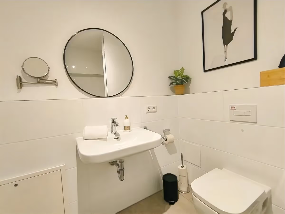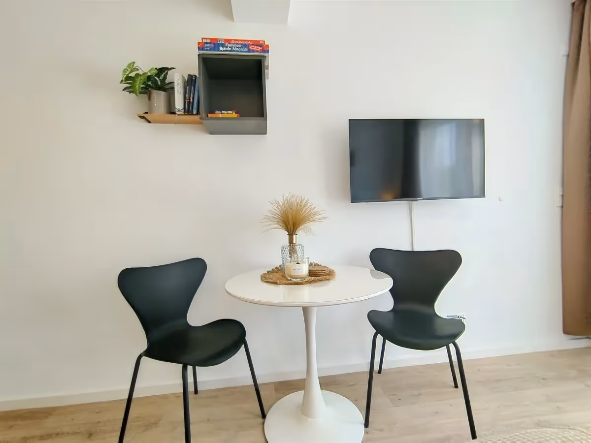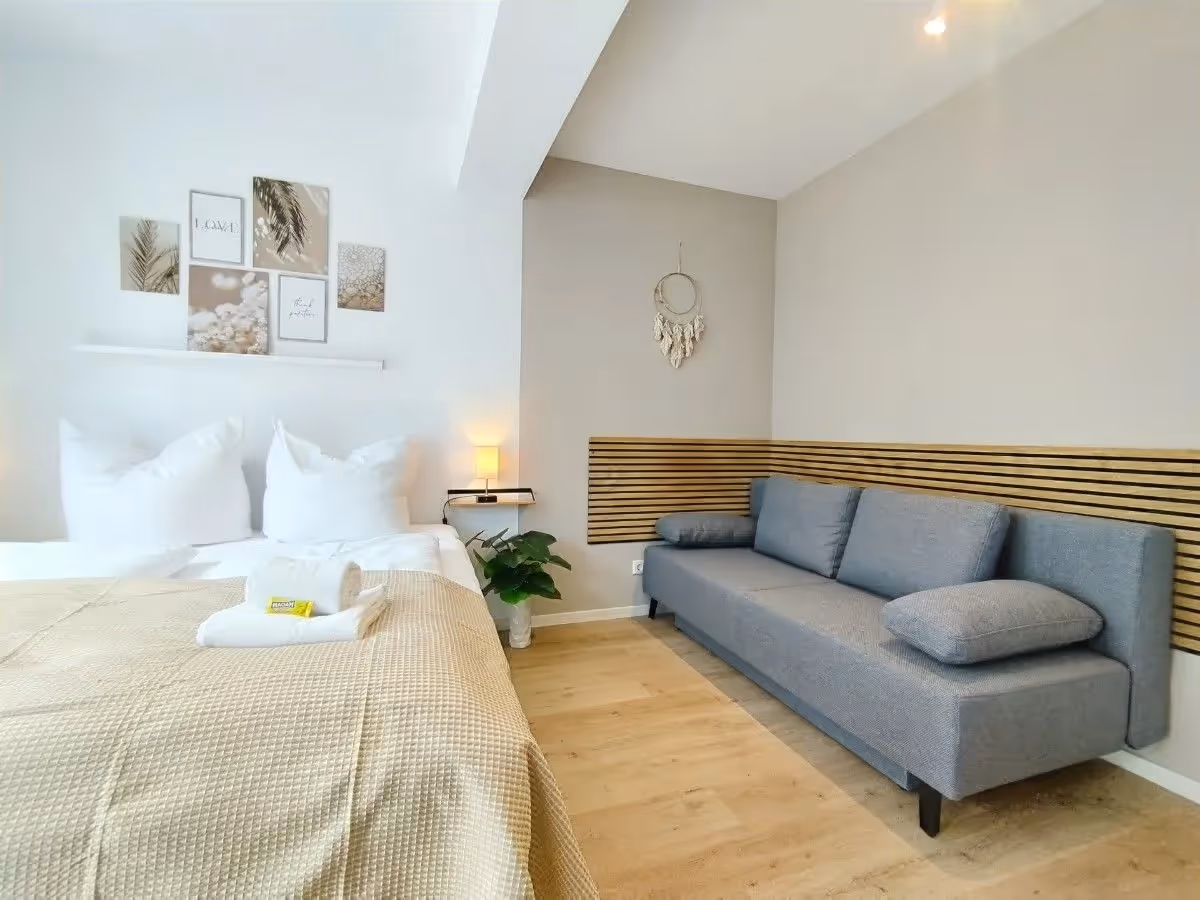 Willkommen in deinem stilvollen Rückzugsort in Erlangen/Buckenhof – ruhig gelegen, durchdacht gestaltet und perfekt angebunden. Das 31 m² große Designer-Studio verbindet modernen Komfort, hochwertige Ausstattung und entspannte Wohlfühlatmosphäre.