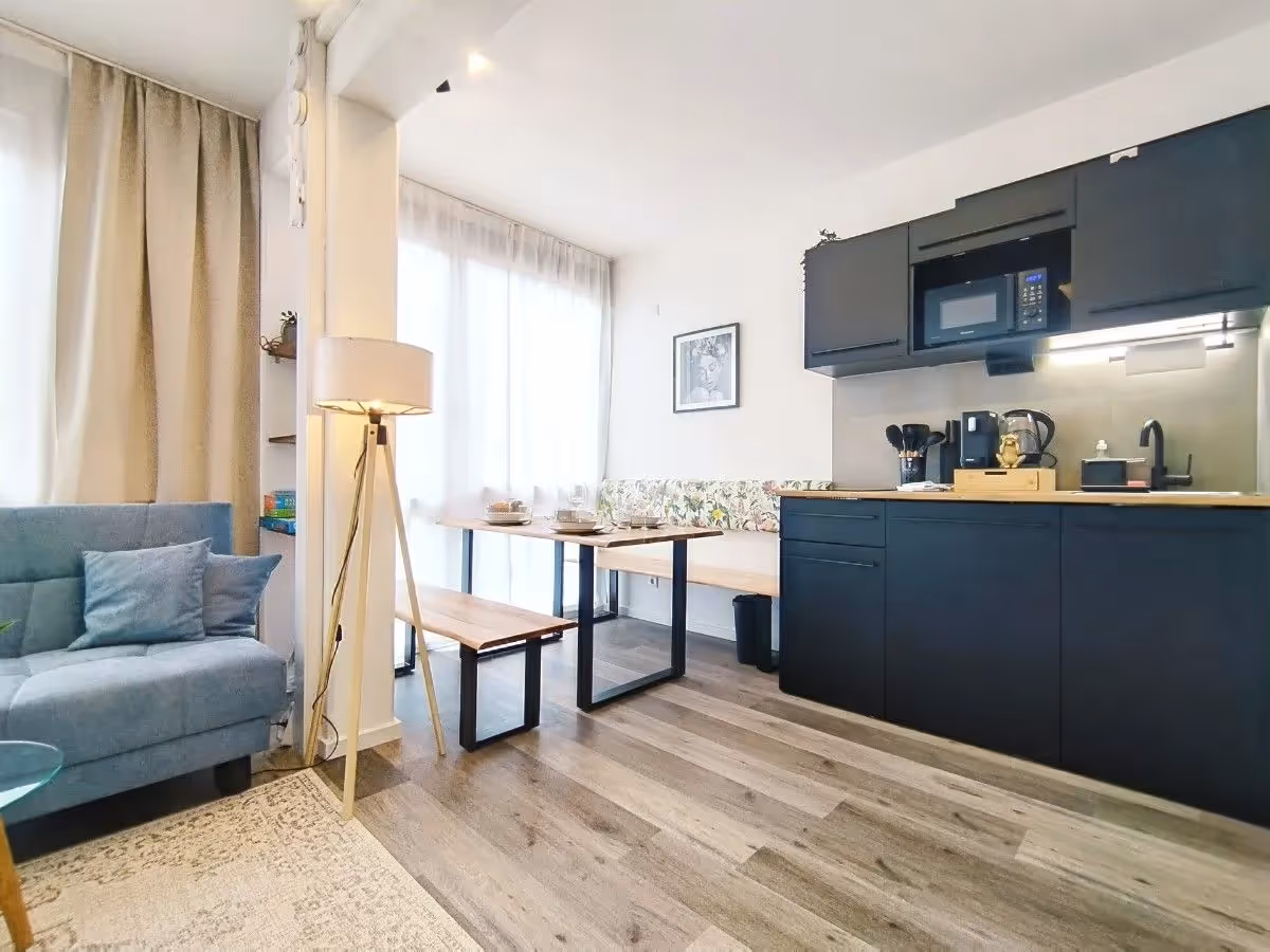 Willkommen in deinem brandneuen Rückzugsort in der nördlichen Innenstadt Nürnbergs! Dieses 27 m² große Designer-Studio überzeugt mit stilvoller Einrichtung, einer ruhigen Lage direkt an der Pegnitz und einem Zugang zur gemeinschaftlichen Dachterrasse mit gemütlichem Sitzbereich und Gasgrill.