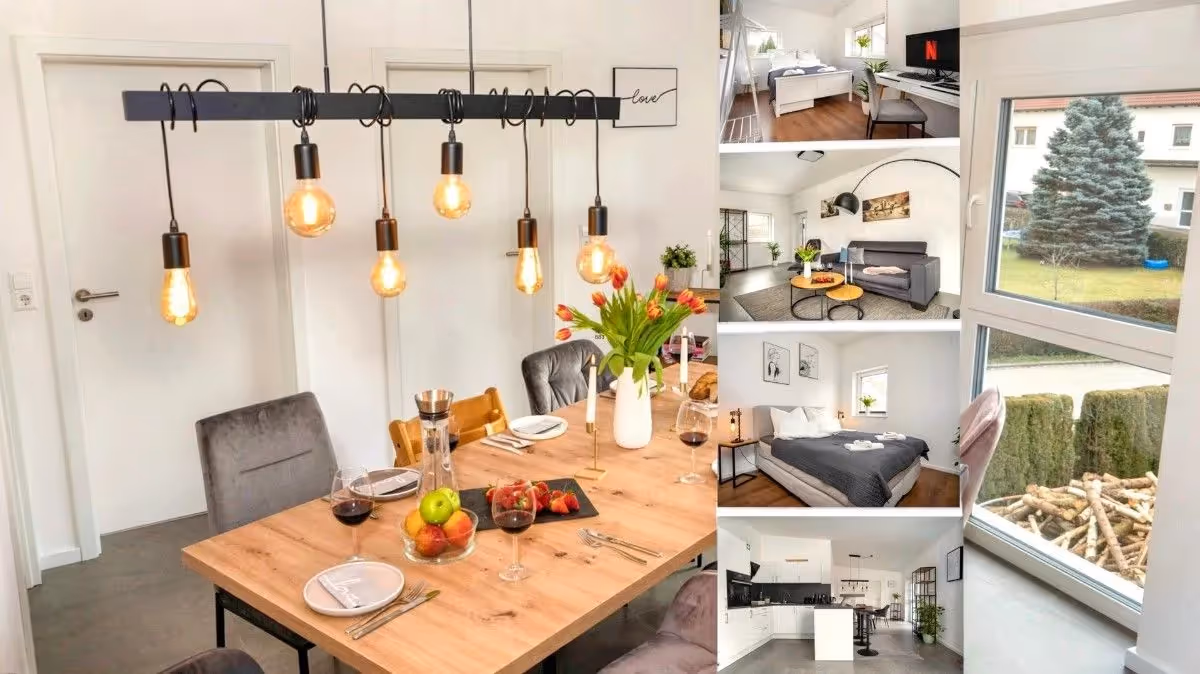 Willkommen in unserer großzügigen 82 m² Wohnoase – ideal für Familien, Geschäftsreisende und Privaturlauber. Hier trifft modernes Design auf wohnlichen Komfort – inklusive XXL Wohnzimmer, ruhiger Dachterrasse und Top-Lage in Dinkelsbühl.