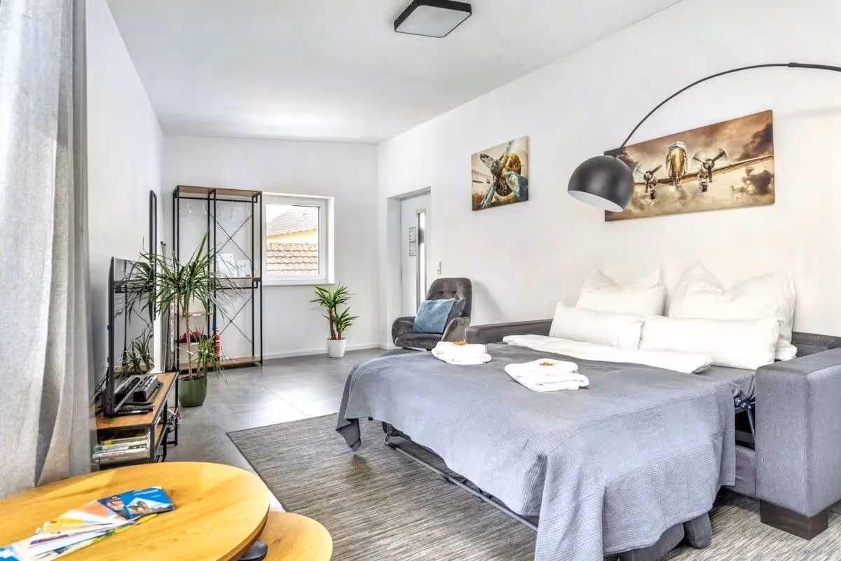 Genieße eine stilvolle Auszeit mit modernem Flair und echtem Wohlfühlfaktor. Unsere Wohnung mit XXL Wohnzimmer ist der perfekte Rückzugsort in historischer Umgebung – buche jetzt und erlebe Dinkelsbühl von seiner schönsten Seite.