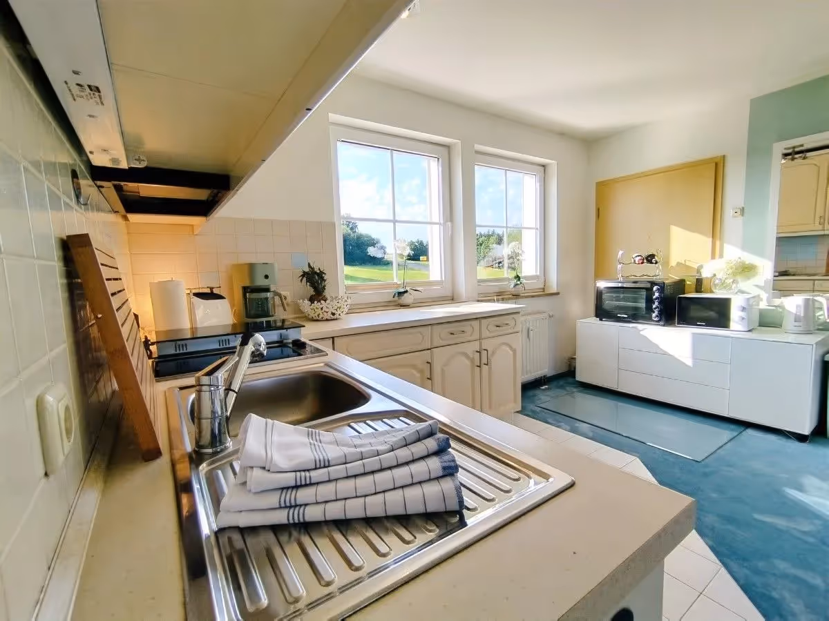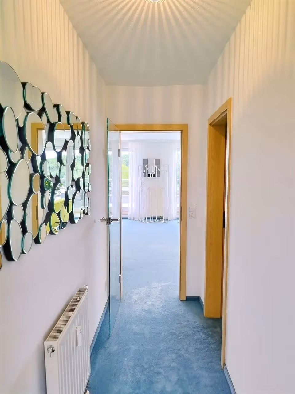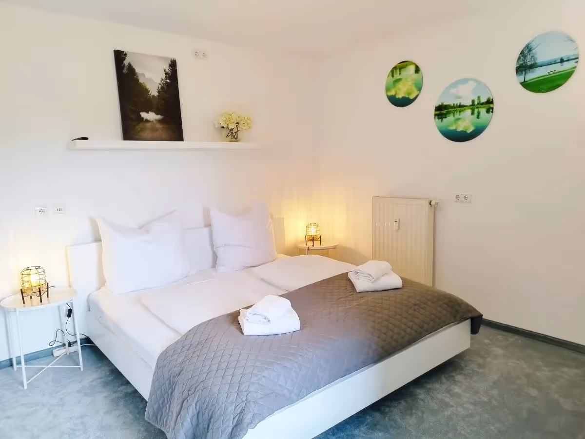 Erlebe exklusives Wohnen mit Dachterrasse und Seeblick! Dieses lichtdurchflutete Penthouse am Brombacher See bietet dir auf 218 m² Wohnfläche und 55 m² Terrasse viel Raum zum Entspannen – mit Sauna, moderner Küche, großem Esstisch, 5 Smart-TVs (inkl. 70" & Soundbar), Disney+, Wii und Arbeitsplatz. 3 Schlafzimmer, hochwertige Schlafplätze & 3 Tiefgaragenplätze inklusive. Nur 10 Min. zu Fuß zum See, 30 Min. nach Nürnberg!