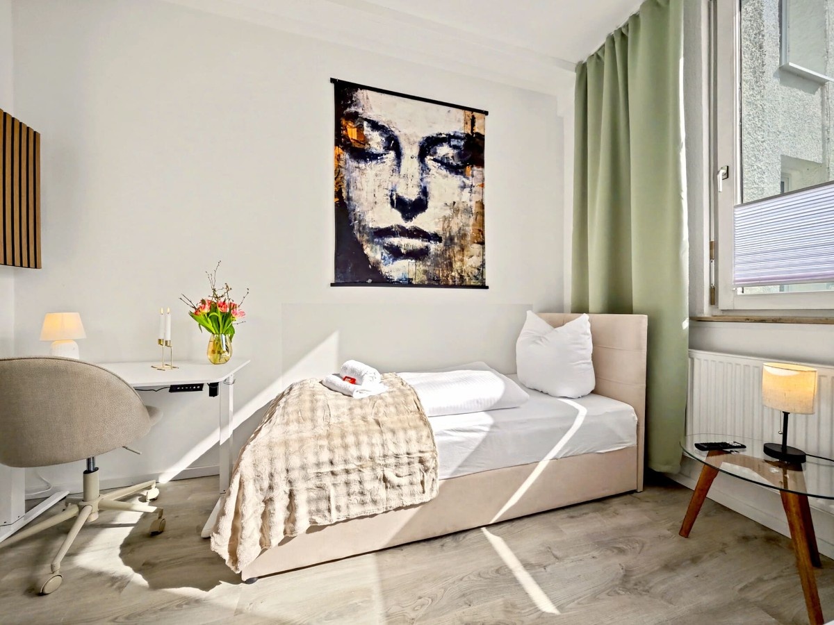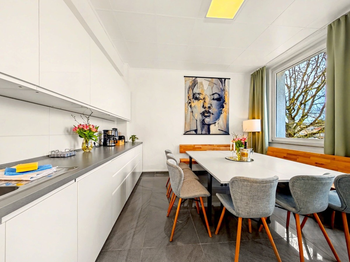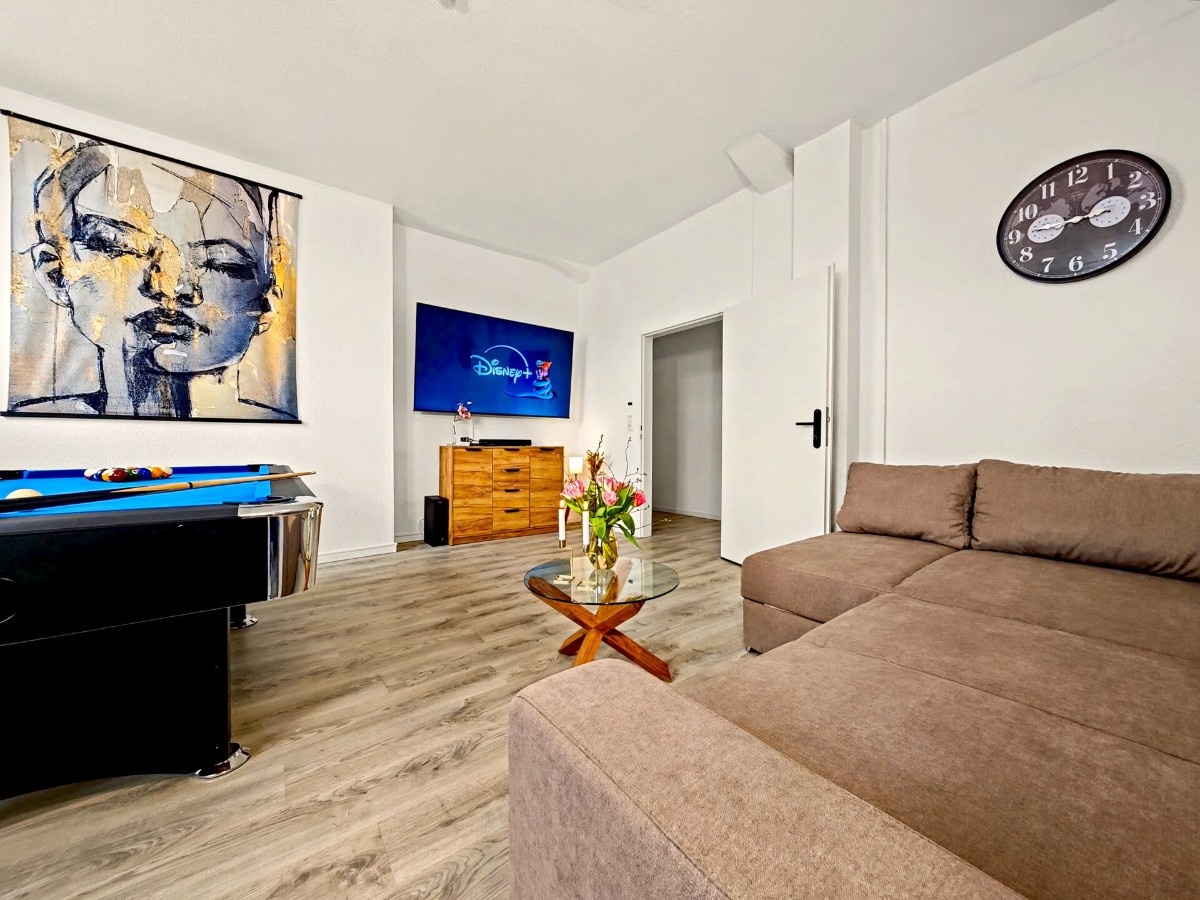 Großzügiges, lichtdurchflutetes 145 m² Loft mit Infrarotsauna, Billiardtisch und Retro-Konsole für Entertainment. Ruhig gelegen im Industrieviertel der Nordstadt – nur 10 Min zur Messe, Innenstadt und Flughafen. Mit 4 Schlafzimmern, zusätzlicher Schlafmöglichkeit im Wohnzimmer, 3 Bädern, großer Küche mit Esstisch für 14 Personen und kostenfreien Parkplätzen ideal für Gruppen. Smart-TVs, Disney+ und zwei Workspaces inklusive.